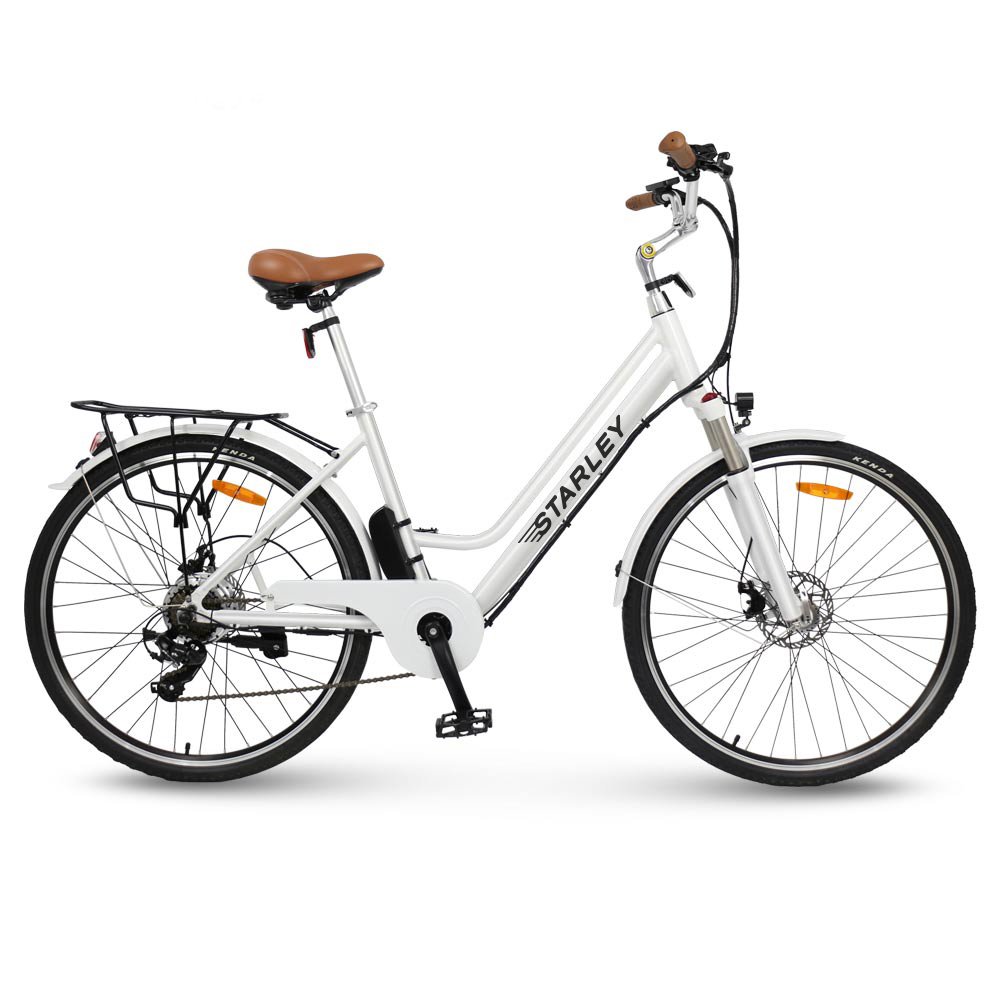 Es una bicicleta tradicional a la que se le ha instalado un motor, una pantalla y una batería. Mediante un sensor, se detecta el inicio del pedaleo y arranca al motor que empuja la bici a distintas velocidades, según el grado de asistencia seleccionado. Una vez que dejás de pedalear o presionas el freno, el motor se detiene.